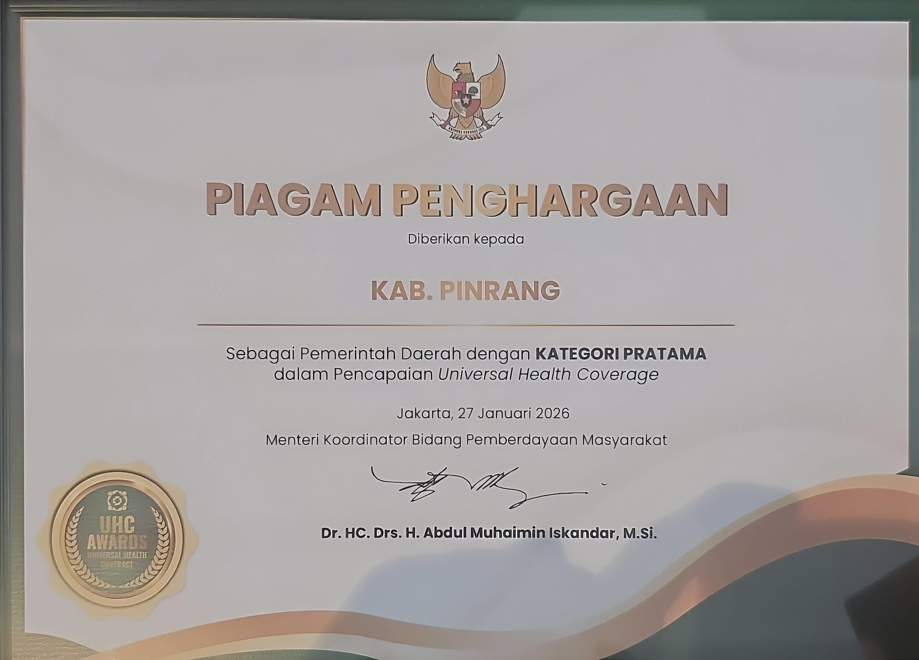 Pinrangkab.go.id — Mengawali tahun 2026, Pemerintah Kabupaten Pinrang kembali menorehkan prestasi sebagai bentuk pengakuan atas keseriusannya dalam menjamin masyarakat mendapatkan layanan kesehatan secara universal dan berkeadilan.