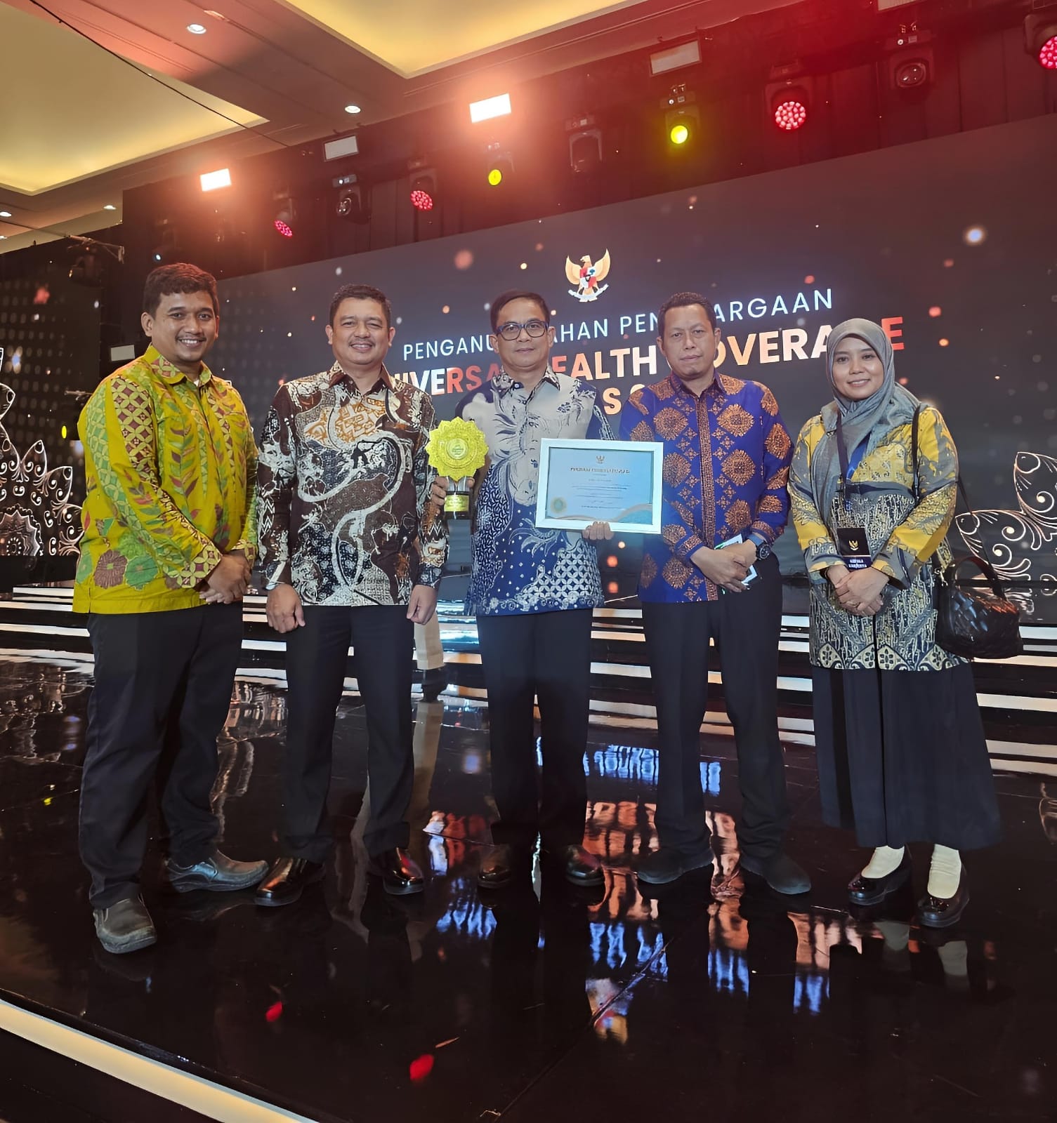 Penghargaan kategori Pratama Universal Health Coverage (UHC) dari Badan Penyelenggara Jaminan Sosial (BPJS) Kesehatan diterima langsung Wakil Bupati Pinrang Sudirman Bungi, S.IP., M.Si dan diserahkan oleh Menteri Koordinator Pemberdayaan Masyarakat Muhaimin Iskandar pada kegiatan Deklarasi dan Pencanangan UHC Nasional yang digelar di Kemayoran, Jakarta, Selasa (27/1).