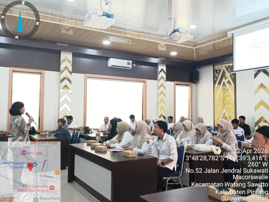 PINRANG – Dinas Kesehatan Kabupaten Pinrang menggelar Bimbingan Teknis (Bimtek) Sertifikat Laik Hygiene Sanitasi (SLHS) dan Labelisasi Tempat Pengelolaan Pangan (TPP) pada Rabu (22/04/2026). Kegiatan yang berlangsung di Aula Puspita Dinas Kesehatan ini menjadi langkah strategis pemerintah daerah dalam menjamin keamanan konsumsi pangan masyarakat.