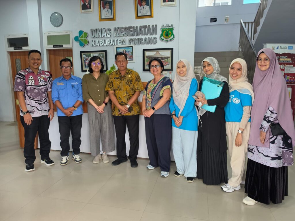 PINRANG – Dinas Kesehatan Kabupaten Pinrang menerima kunjungan lapangan dari Tim UNICEF bersama Yayasan Jenewa Madani Indonesia pada Kamis (23/04/2026). Kunjungan ini bertujuan untuk melakukan dokumentasi praktik baik penerapan 3 Pesan Kunci Pencegahan Stunting serta evaluasi strategi Komunikasi Perubahan Perilaku (KPP) di tingkat akar rumput.